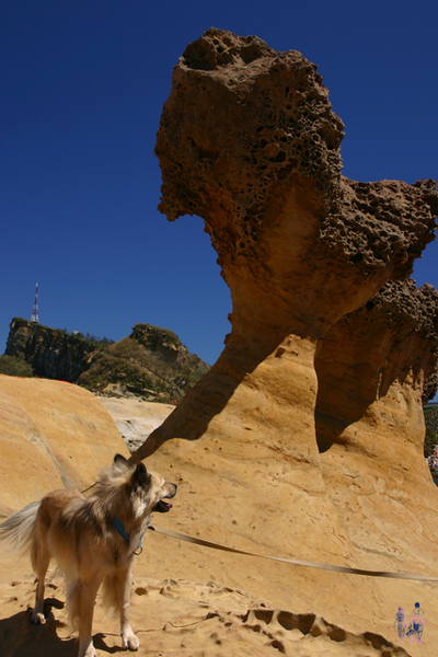 這次路況就不報了,因為就在前往洋荳子的路上,好話不說第二遍,欲知詳情,請自行點擊左方鏈結(順便增加一下本小站點擊率,太厲害了~)。不過有個笑話要報,我們天兵2人1狗是從出口進野柳風景區的,大概因為颱風來,許多樹木從山上流下來有礙觀瞻,因此早早就有工人從出口搬運這些東西出去。後來離開才知道原來還有入口,還要收費ㄋㄟ~ 當天兵就這種時刻最愉悅,因為不用付錢,而且人家說不定還限制寵物進入呢!
