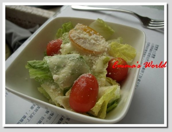 套餐的沙拉也不馬虎,生菜十分青翠,搭配上蜂蜜芥末口味的醬汁,還有灑的滿滿的起士粉,馬上就很有夏天的感覺囉!