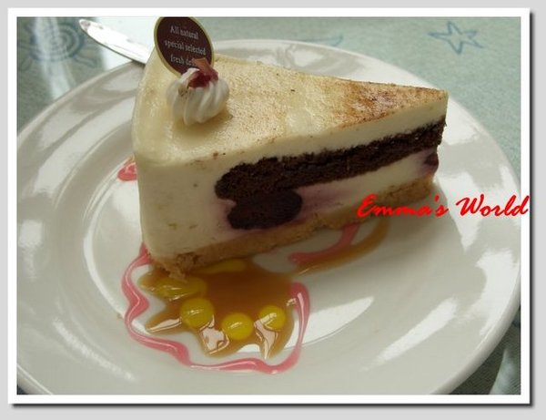 雖然肚子已經很飽,但是甜點是裝在另一個胃裡的ㄇㄟ。套餐所附的甜點是這道起士蛋糕,味道很不錯喔!不會很甜,搭配著裝飾的醬料吃起來剛剛好。