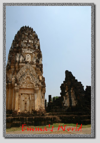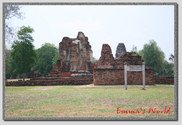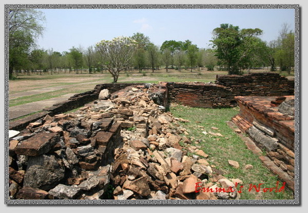 接下來我們用更加散漫的心情逛著鄰近的景點,於是我們逛到了菩斐鑾寺,順著光觀路線會很容易看到入口,要收費,外國人30Baht,但如果從旅客中心那邊逆著觀光路線的話,過了一座橋就一毛也不收。我們因為是觀光客,不了解狀況買了票有點後悔,因為這個寺只剩下下面這張圖的斷垣殘壁,整個區域雖說滿大,但多數都是草皮,能看的就下面這幾張照片。