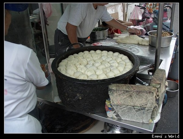 算一算大約70個水煎包煮一鍋,一鍋要煮15分鐘左右。就這樣一鍋接著一鍋,煮了長長的35年。水煎包爺爺曾經生病以致於沒辦法工作,這次看到健康的水煎包爺爺奶奶,還有他們的孫女,水煎包小妹妹,即使沒吃到水煎包,只是看到他們也讓我覺得很高興。好不容易一堆人滿意的拿走了第一鍋所有的水煎包,排到第二鍋,毛媽手上只有三個高麗菜口味,等不及韭菜的,三兩口就吃了一個。阿,口味沒變,這是種難以言喻的滿足!